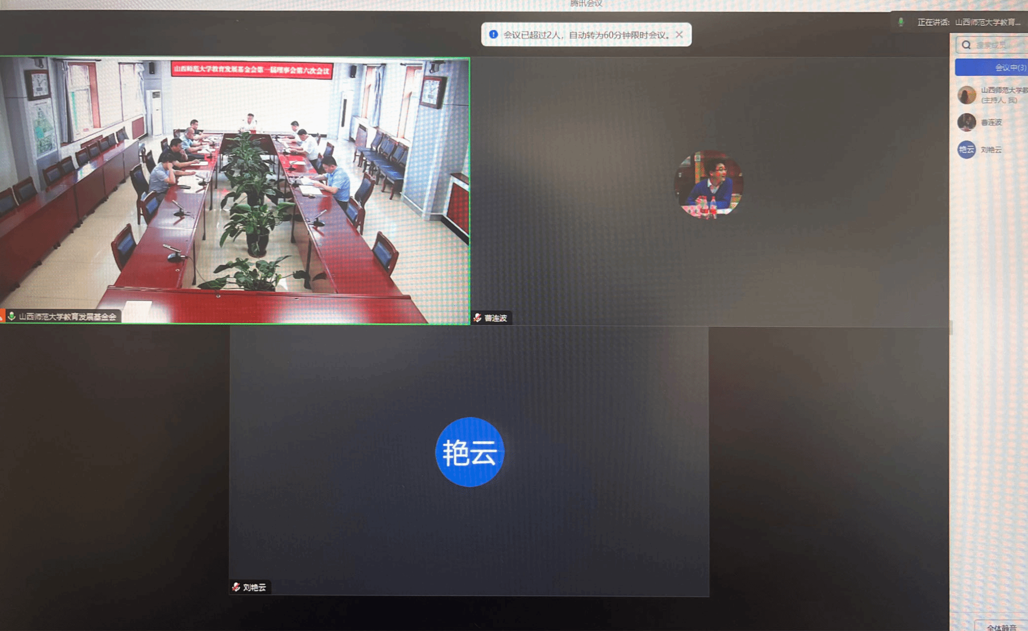 7月16日,山西师范大学教育发展基金会第一届理事会第六次会议通过线上线下相结合的方式,分别在行政北楼414会议室与腾讯会议同时召开。副校长王云出席会议。基金会全体理事、监事参加会议,会议由教育发展基金会新任理事长陈向波主持。