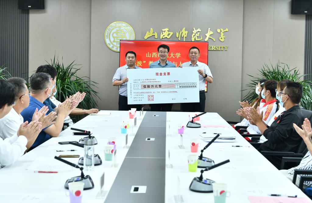 曹连波深情回顾了在母校的求学经历,感谢学校和老师的培育之恩,介绍了设立基金的初衷与愿景,并对学校建设发展和校友工作提出了宝贵的意见建议。他表示,希望通过捐赠更好地回馈母校,为母校建设一流师范大学尽绵薄之力。